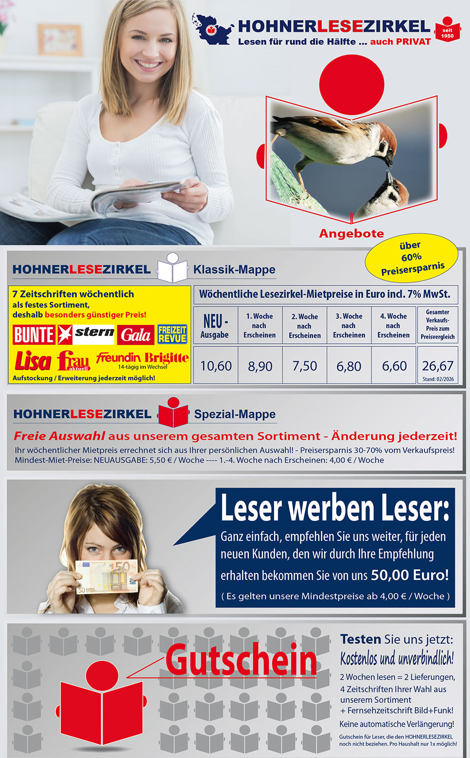 Lesezirkel ab 3,30 Euro pro Woche Geschenk-Gutschein ab 20,00 Euro
